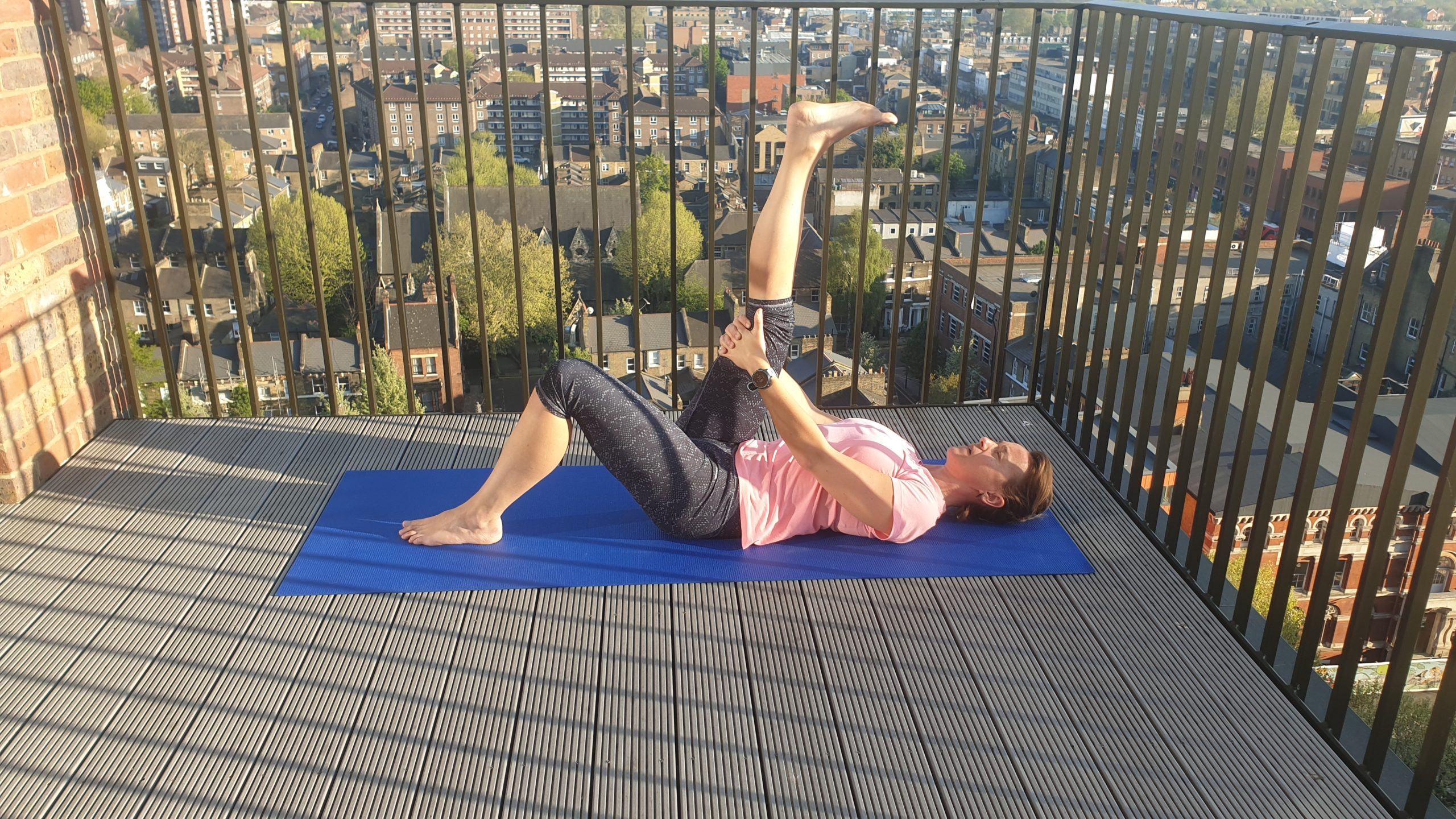 – Lying on your back with one knee bent. pull one thigh up to chest