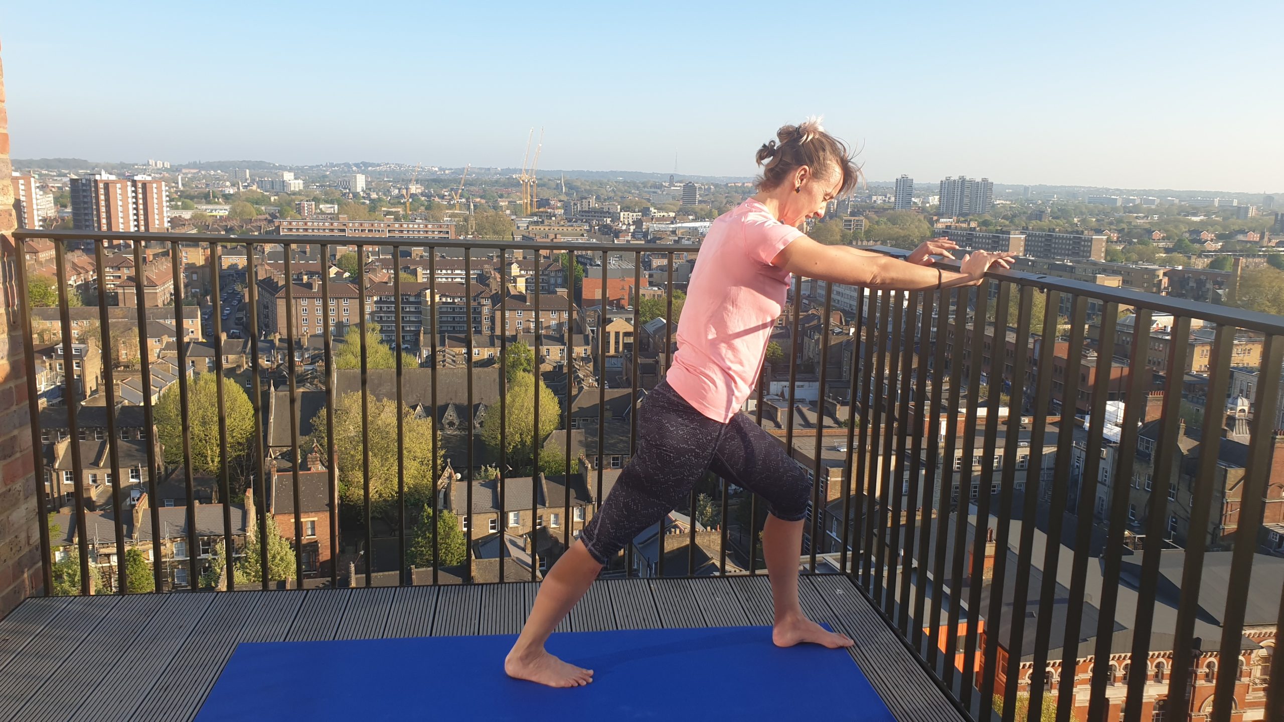 – Walk on the spot alternating dropping the heel to the ground to stretch the calf muscles