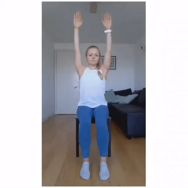 – Reach up high above you head and arc over reaching towards the corner of the room.